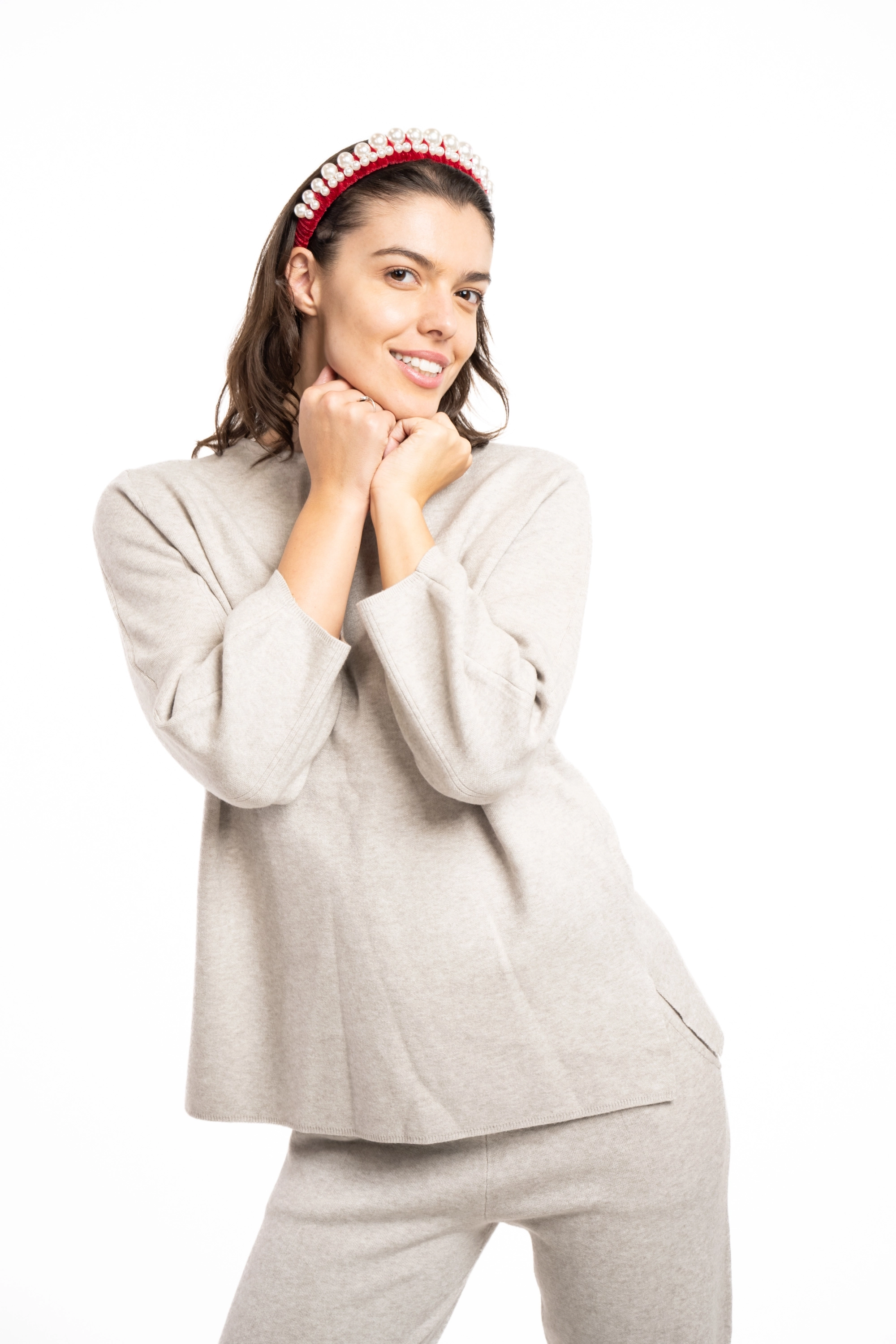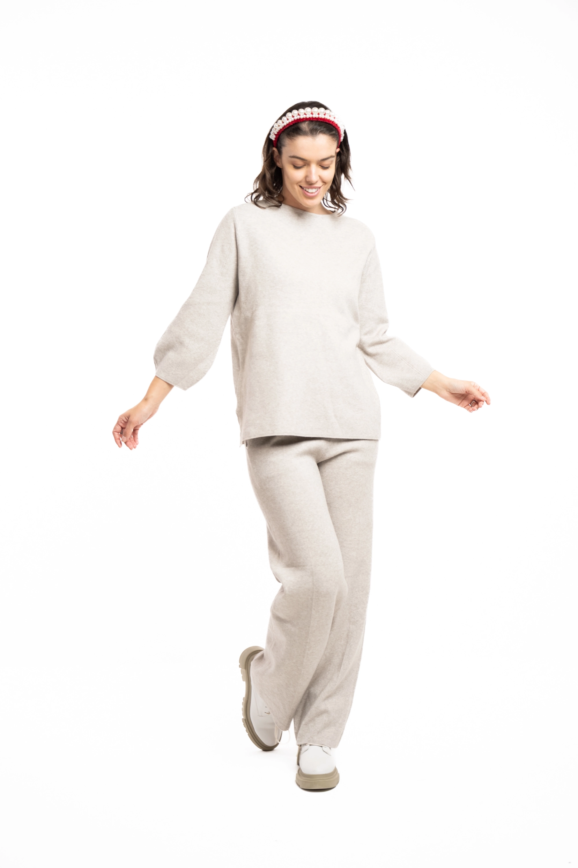 Descriere: Compleu din tricot cu bluza cu maneci supradimensionate